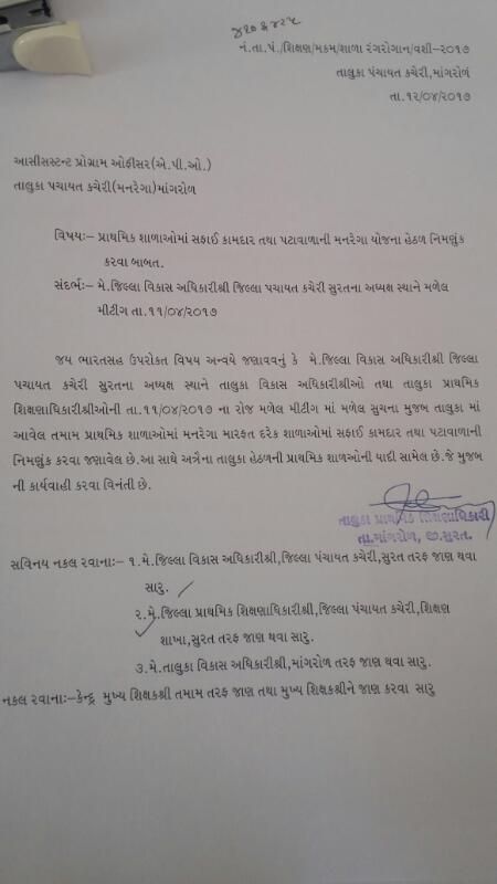SURAT MANROL PRIMARY SCHOOL MA SAFAI KAMDAR TATHA PATAVALA NI NIMNUK BABAT PATRA DATE -12-4-2017.